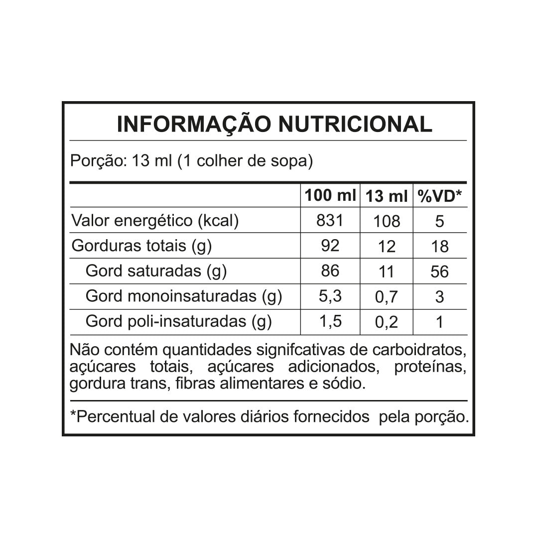 O Óleo de Coco Sem Sabor 100ml Santo Óleo é uma opção saudável e versátil para a alimentação e também para cuidados pessoais. Extraído da polpa do coco, o óleo passa por um processo de desodorização que remove o sabor e o aroma característicos do coco, tornando-o ideal para diversas aplicações culinárias e cosméticas. Este óleo é fonte de ácido láurico, nutriente associado ao fortalecimento do sistema imunológico, além de conter TCM (triglicerídeos de cadeia média), conhecidos por seu papel no metabolismo energético. O Óleo de Coco Sem Sabor Santo Óleo pode ser utilizado em diversas preparações culinárias, pois apresenta boa estabilidade em altas temperaturas. É ideal para frituras, refogados, bolos, pães e sobremesas, preservando o sabor original dos alimentos sem interferir no paladar. Além da culinária, também pode ser utilizado em cuidados pessoais, auxiliando na hidratação da pele e dos cabelos, proporcionando maciez e brilho natural. Cada embalagem contém 100ml, oferecendo praticidade para o uso diário. Sua embalagem facilita o armazenamento e o uso controlado, evitando desperdícios. O produto também pode ser combinado com outros itens da linha Santo Óleo, como o Óleo de Abacate 200ml e o Óleo de Gergelim 200ml, ampliando as possibilidades de uso na cozinha. Escolher o Óleo de Coco Sem Sabor Santo Óleo é optar por um produto natural, versátil e prático para o dia a dia. |